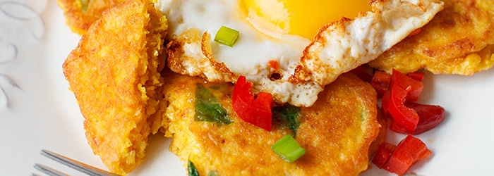 Kukurydzę odcedzić i rozmiksować z dodatkiem kurkumy i papryki w proszku w rozdrabniaczu lub blenderem (na papkę z kawałkami kukurydzy mniejszej i większej wielkości). Przełożyć do miski, dodać posiekaną bazylię, mleko oraz jajko i wymieszać. Dodać mąkę z proszkiem do pieczenia, doprawić solą i delikatnie wymieszać na jednolitą masę. Rozgrzać patelnię, posmarować ją olejem, nałożyć po ok. 1 i 1/2 łyżki masy na 1 placka i delikatnie rozprowadzić na grubość ok. 7 mm. Smażyć bez przewracania przez ok. 1,5 minuty aż będą zrumienione od spodu i urosną. Wówczas przewrócić na drugą stronę i powtórzyć smażenie. Zdjąć z patelni i powtórzyć z koleją porcją placków. Na lepiej rozgrzanej patelni placki mogą się szybciej usmażyć.
